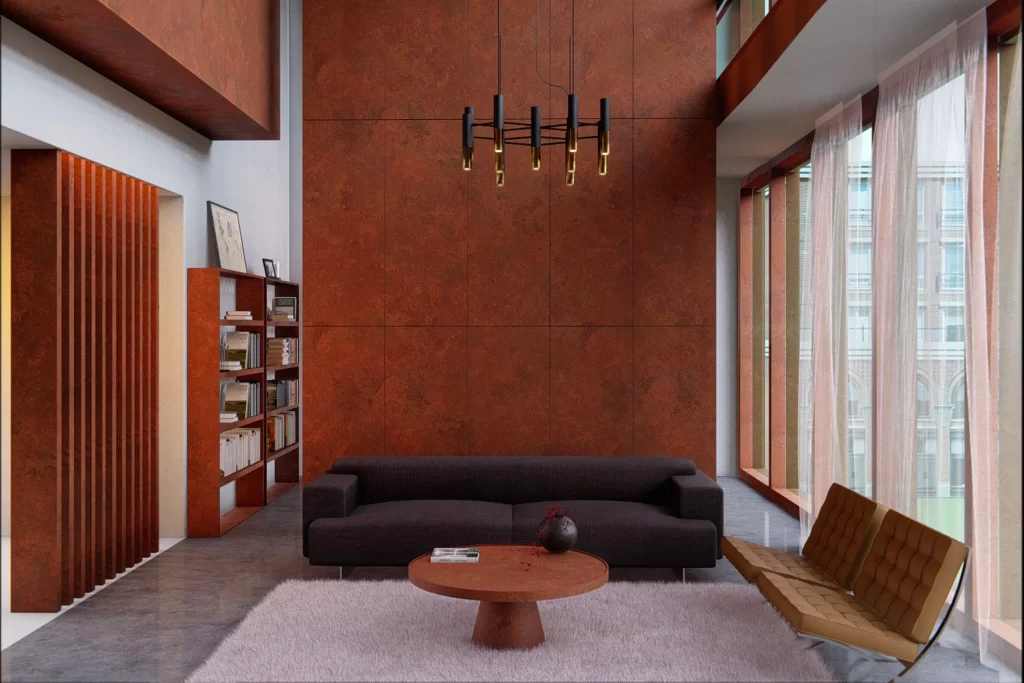 🔹 Ambientes ideais: O efeito corten combina perfeitamente com paredes de destaque, painéis de TV, fachadas externas e áreas gourmet.